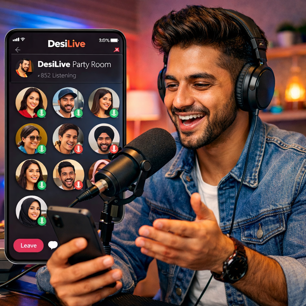 DesiLive Canlı Sesli Parti Odaları (Voice Party Rooms), birden fazla kullanıcının aynı anda tek bir sanal odada buluşarak, sadece seslerini kullanarak gerçek zamanlı sohbet edebildiği, oyunlar oynayabildiği ve etkinlikler düzenleyebildiği dijital toplanma alanlarıdır. Bu özelliği eski nesil “chat odaları” kavramının, modern ses teknolojileriyle harmanlanmış ve oyunlaştırılmış bir versiyonu olarak düşünebilirsiniz.